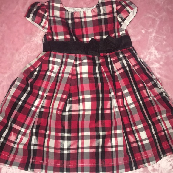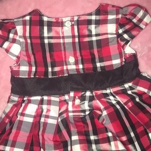 Christmas dress Black bow in front Cuffed sleeves Lined built in Button back
