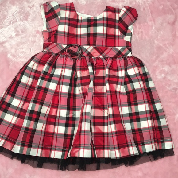 Beautiful Christmas dress Rosette on front Button on back Tulle on edge of built in slip