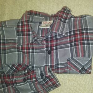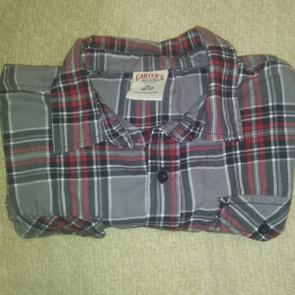 Grey, red and white plaid Carter's button down shirt, long sleeved, boys XL
