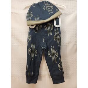 Carters 6 Month 3 Pieces Set Hat Pants Socks Boys Blue Cactus