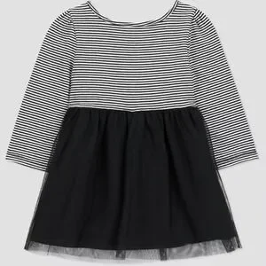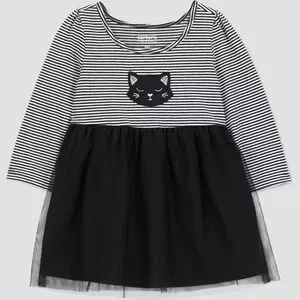 Carter's baby girl Halloween tutu dress set featuring a striped knit long sleeve top with an adorable cat applique and a layered tulle skirt. Includes matching diaper cover for comfort and coverage.