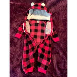Carter's 6 months girls fleece zip bodysuit hooded pink gingham, heart SOFT WARM