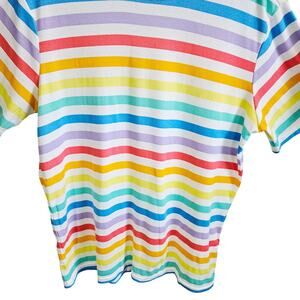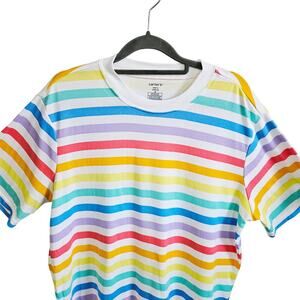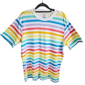 Carters Adult Size XL Tee Shirt Rainbow Stripe 100% Cotton Colorful Crewneck