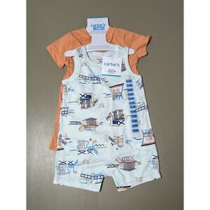 Carter’s Baby 2 Pieces 6-9M Light Green Beach Design And Orange