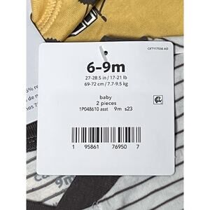 Introducing a cute and comfortable two-piece set from Carter's for your little one. The set comes in a lovely striped pattern with one piece in white and gray and the other in yellow with trucks. The pieces are perfect for a baby or toddler between the ages of 6-9 months.