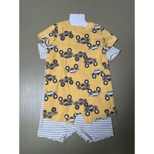 Carter’s Baby 2 Pieces 6-9M White W/Gray Stripes And Yellow W/Trucks