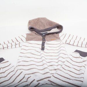 Carter’s Baby Boy 18M Hooded Velour One-Piece Pajamas – Heather White & Brown Stripes, Snap Crotch, Excellent Condition
