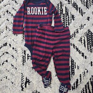 Carter's Baby Boy 2 piece Long Sleeve Striped Rookie Set No stains or holes Good condition. 6 Months