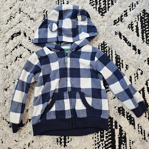 Long Sleeve Zip Up Blue and White Plaid Hooded Sweatshirt