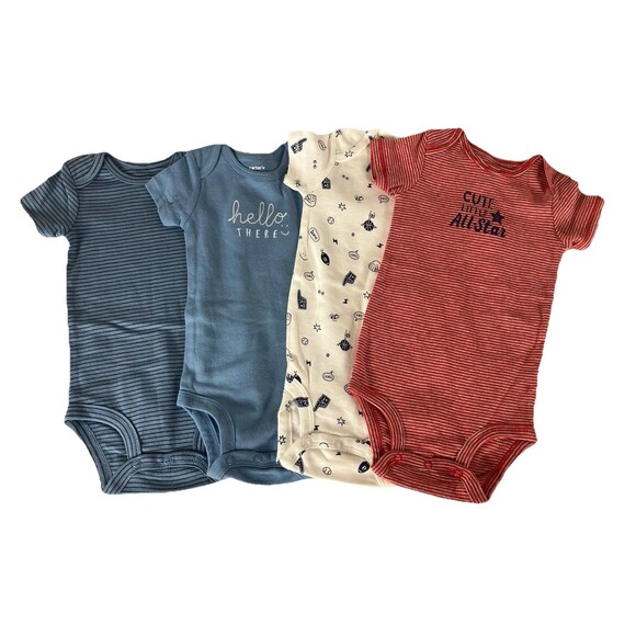 Carter’s Baby Boy Bodysuits 12M Lot of 4 – Cute Sayings & Stripes