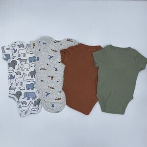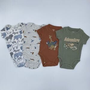 Carters Baby Boy Safari Animal Print Lot of 4 Short Sleeve One Piece Size 3M