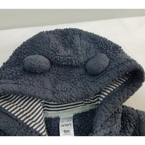Carters Baby Boys Blue Fluffy Hooded Jacket 9M With Zipper & Pockets