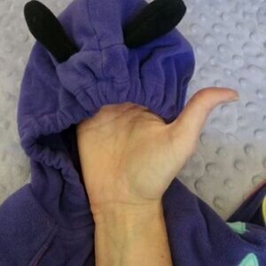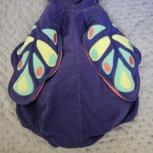 Has some stuffing inside, very warm, had my baby wear a long sleeve shirt and leggings underneath and she stayed nice and cozy