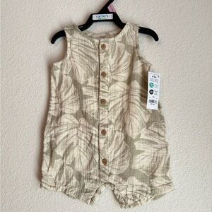 Carter's Baby Cotton Beige Leaf Print Button Romper size 0/3M-NWT