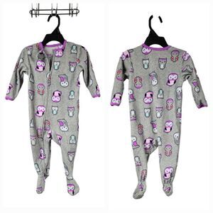 Carter's Baby Girl 12M Sleep & Play Gray OWL Printed Footie One-Piece Pajama PJs