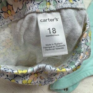 Carter’s Baby Girl 18 Month One Piece Leggings Lot Floral Cat Pink Blue