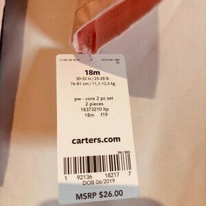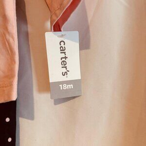 New with tags. Carter’s 2-piece outfit set for baby girls, size 18 months. Includes a pink short-sleeve dinosaur graphic tee and matching black leggings. Soft, comfortable, and perfect for everyday wear, playtime, or gifting. No flaws
