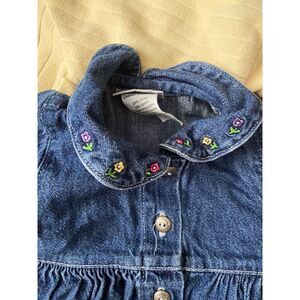 • Vintage Carter's denim dress short sleeve outfit with embroidered flowers and diaper cover