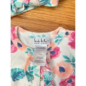 • Nicole Miller baby girl floral footed long sleeve outfit with matching headband