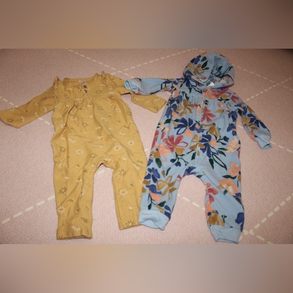 Carters Baby Girl 9 month One Piece Outfits Floral Design Fleece