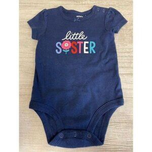 Carter's Baby Girl Bodysuit "Little Sister" Short Sleeve Navy Blue Size 9M