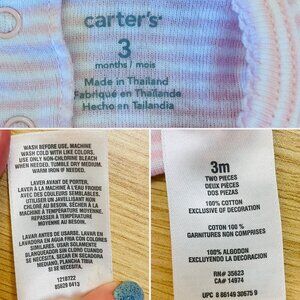 This Carter's baby girl dress bodysuit in pink striped design, sized for 3 months, is made of 100% cotton short sleeves. Crafted in Thailand, it guarantees comfort and style for your little one.