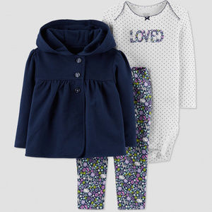 3pc set Soft fleece cardigan and interlock pants Cotton rib bodysuit