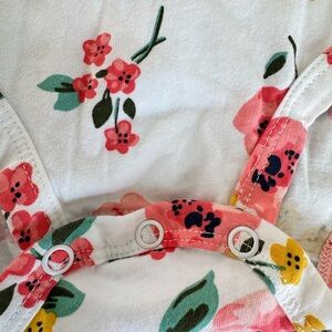 This adorable Carter’s baby girl bodysuit is perfect for keeping your little one cozy and stylish! Featuring a soft white fabric with a vibrant floral print, long sleeves for warmth, and a ruffle across the front, this one-piece outfit is both fashionable and comfortable.