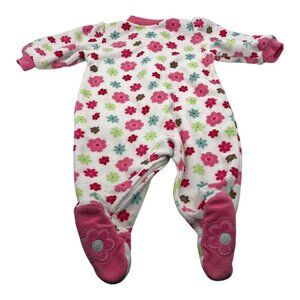 Carter’s Baby Girl One Piece Footed Pajamas Size 6M Floral Design Pink Accents