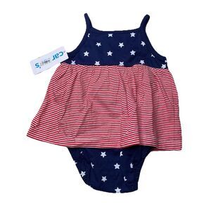 Carters Baby Girl Patriotic One Piece Stars And Stripes Size 9 months (17 lbs - 21 lbs) New NWT. 100 % cotton. Snap closure.