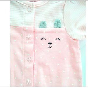 Carter's Baby Girl Polka Dot & Stipe Cozy Happy Romper