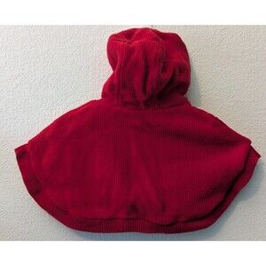 Carters Baby Girl Red Sweater Cape Shawl Button Faux Fur Hood 12 Months (290m)