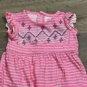 Carter’s Romper 6M - Short sleeve romper features pink and white stripes with a vibrant Aztec design in blue, turquoise, and pink.