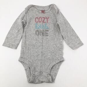 Baby girl long sleeve onesie. Gray/white striped. 100% cotton. In good used condition. No stains, tears or holes.