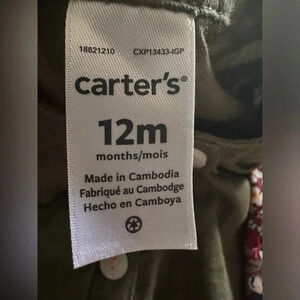 EUC Carters Baby Girls 2,Pc. Tunic and Floral,Print Leggings Set, Olive and Pink Combo Olive and pink colors