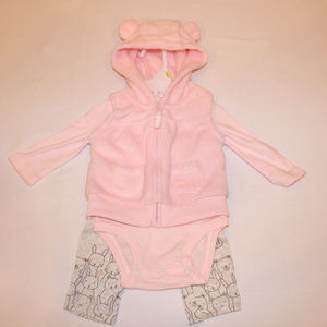 Carter's Baby Girls' 3 Piece Bear Cardigan Little Jacket Set 3 Months. Color: Pink&Gray/ Made in Cambodia/100% polyester/Jacket,one piece and bottom.Condition: