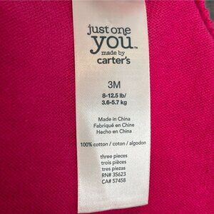 This adorable Carter’s 2-piece outfit set features a soft pink cardigan paired with a sweet gray polka-dot dress accented with bright pink buttons and a flower detail. Perfect for photos, outings, or everyday wear. Both pieces are in gently preowned condition with light normal wash wear. Please see photos for details and sizing.