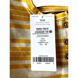 Carters Baby Girls 4-Piece Outfit Set 9-12M - Floral & Striped Bodysuits With Pi