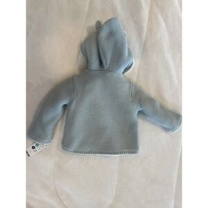 Keywords: baby cardigan, knit sweater, hooded sweater, baby clothes, Carters, new with tags, gray sweater, pom pom, infant sweater, baby outerwear, 9M, baby knit cardigan, sherpa lined, baby jacket