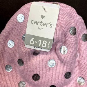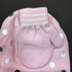 Carter's Baby Hat & Mitten Set Ages 6-18 Months - Pink Metallic Dot. Brand New With Tags!