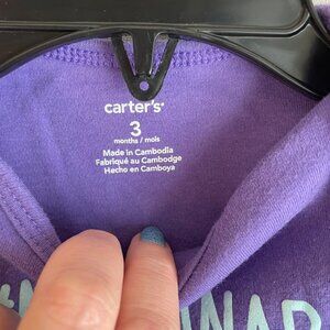 Carters Baby One Piece 3M Purple Hashtag NeedANap Short Sleeve Bodysuit Cotton