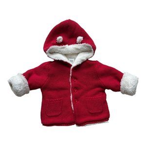 Dress up your little one in this adorable Carter's Red Sherpa Hooded Cardigan. Made of 100% polyester and lined with 100% cotton, this comfortable jacket features a solid pattern with a red hood and button accents. The long sleeves make it perfect for the fall and winter seasons, while the pea coat style adds a touch of sophistication to any casual or travel occasion.