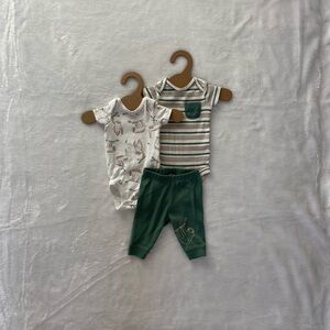 Finally! A 3-piece set that makes getting dressed easy! Mix and match these pull-on pants with the bodysuit of your choice. Or dress baby boy in one and keep the other in the baby bag when quick changes are needed. Perfect for the changing seasons and warmer weather, this is a playwear set for baby boy you'll keep coming back to! Plus, essentials are always worth stocking up on.