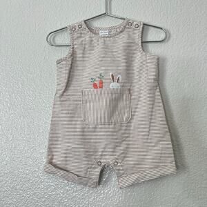 Carter’s Baby Striped Bunny Romper tan white vertical stripe, 3 Months. New without tag or worn once. First photo is a stock photo to show fit and detail only.
