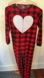 Carters Black & Red Checkered Feet Holiday Pjs w/white heart zip up Size 12