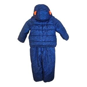 Carter's Blue Print Lil Monsters Matching Winter Snow Bib & Coat Set Bundle