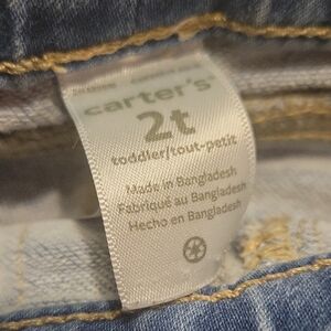 These blue jeans from Carter's offer a slim fit with a stylish embroidered detail near the ankle. The elastic waistband ensures comfort and easy wear, while the denim's natural fading adds a casual, worn-in look.