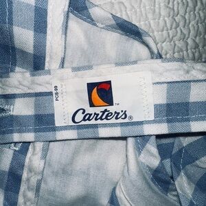 Carters Blue and white large gingham checked pinafore romper