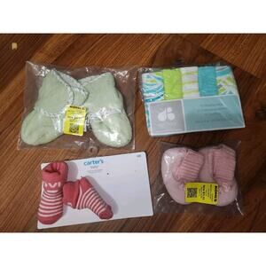 Carters Booties Socks Washcloth Bundle New Born 3 Months