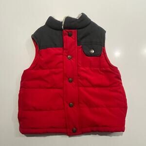 Carters Boy 4T Puffer Vest Sherpa Collar Fleece Red Gray Zip Up Winter Jacket